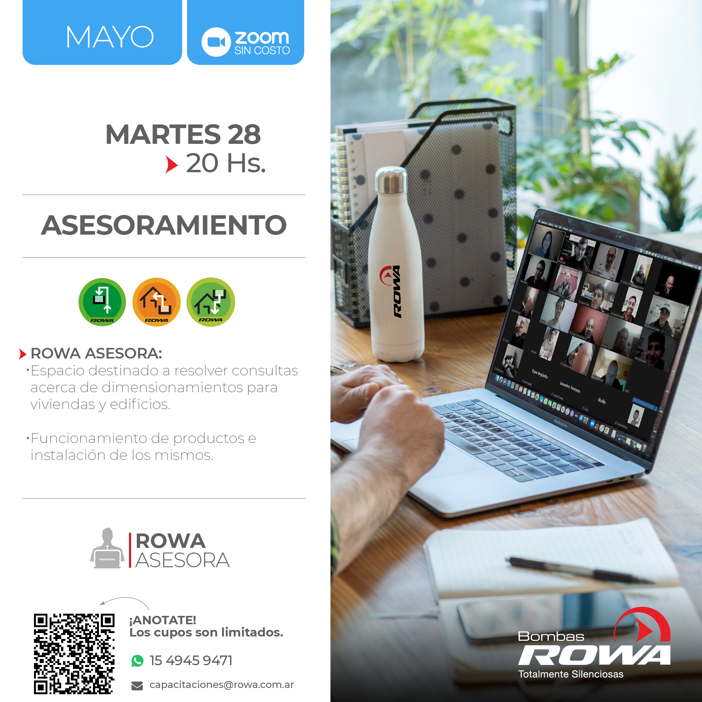 Envianos un mensaje solicitando la inscripción al primer RowaAsesora del año por ZOOM SIN COSTO!