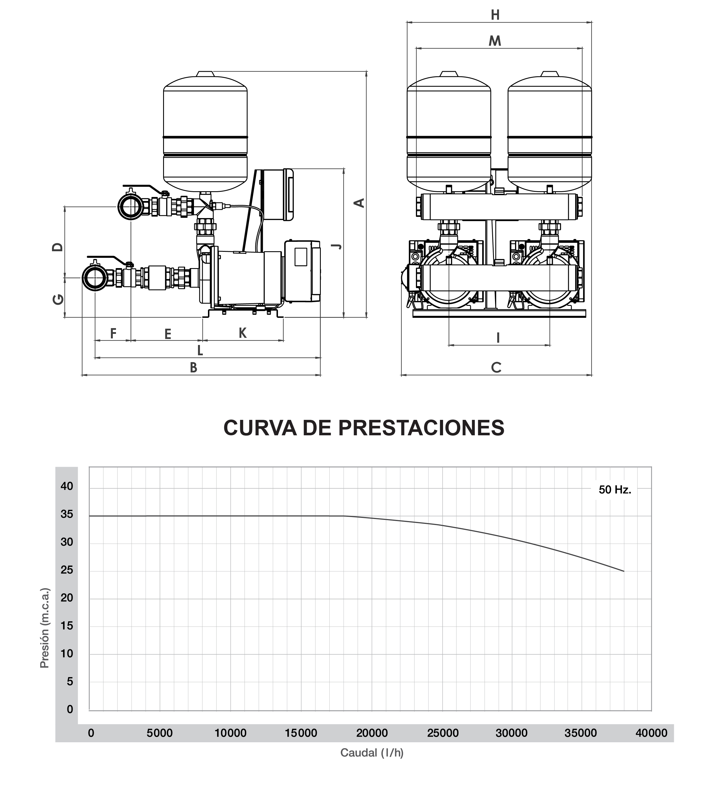 - Su gran ventaja reside en que son equipos que están diseñados y preparados para ser acoplados en forma automática en grupos de 2 (dos) transformándose así en un grupo de presión (PRESS VF + PRESS VF), trabajando entre ellos con arranques en cascada, además de ir alternando en su funcionamiento.